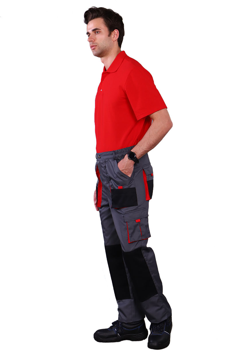 Брюки мужские с застежкой гульфика на тесьму «молния» и притачным поясом. Передние половинки брюк с двумя боковыми накладными объемными карманами с фигурным входом, с наколенниками. Наколенники со входом для амортизационных накладок.