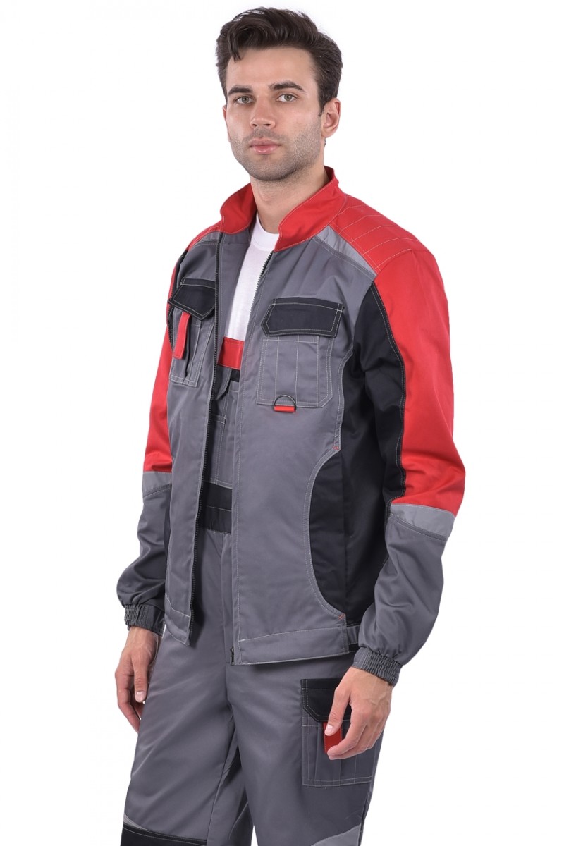 ➠ Куртка: силуэт прямой, пояс притачной, застежка на молнию, воротник стойка. Накладные карманы комбинированные с малыми накладными карманами с разделителями. Прорезные карманы на нижней части полочки. По шву притачивания кокетки вверху и по рукавам фигурные вставки СОП.