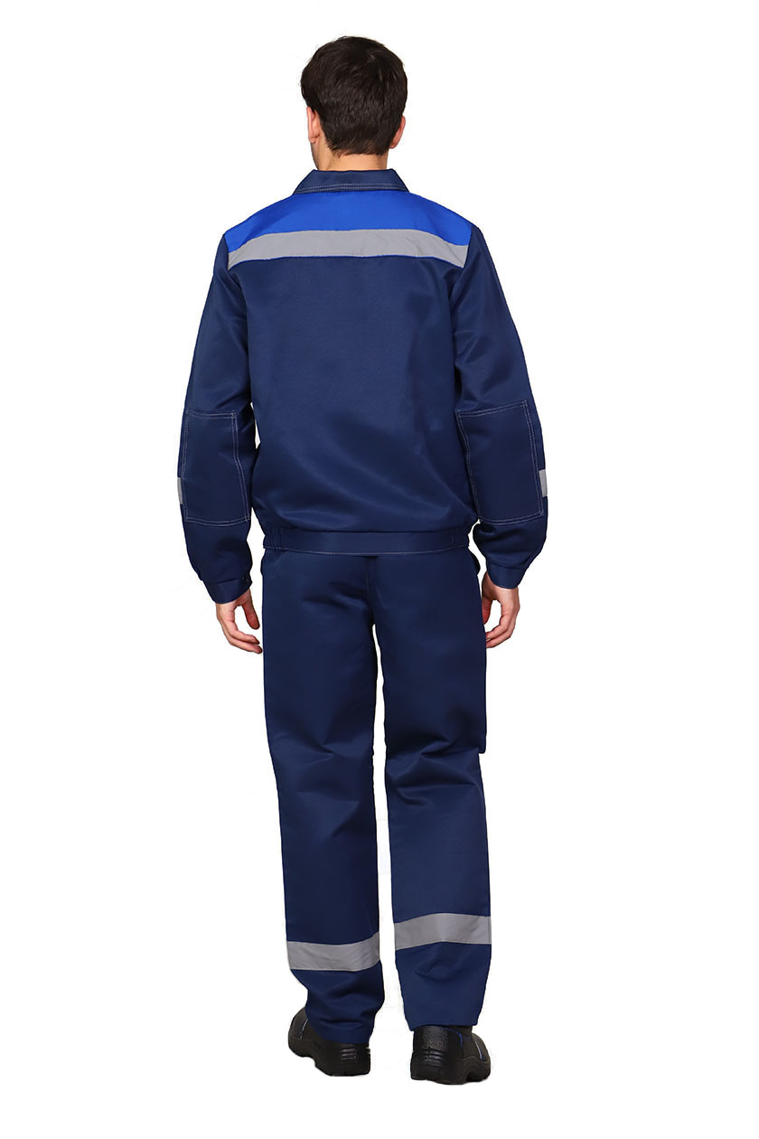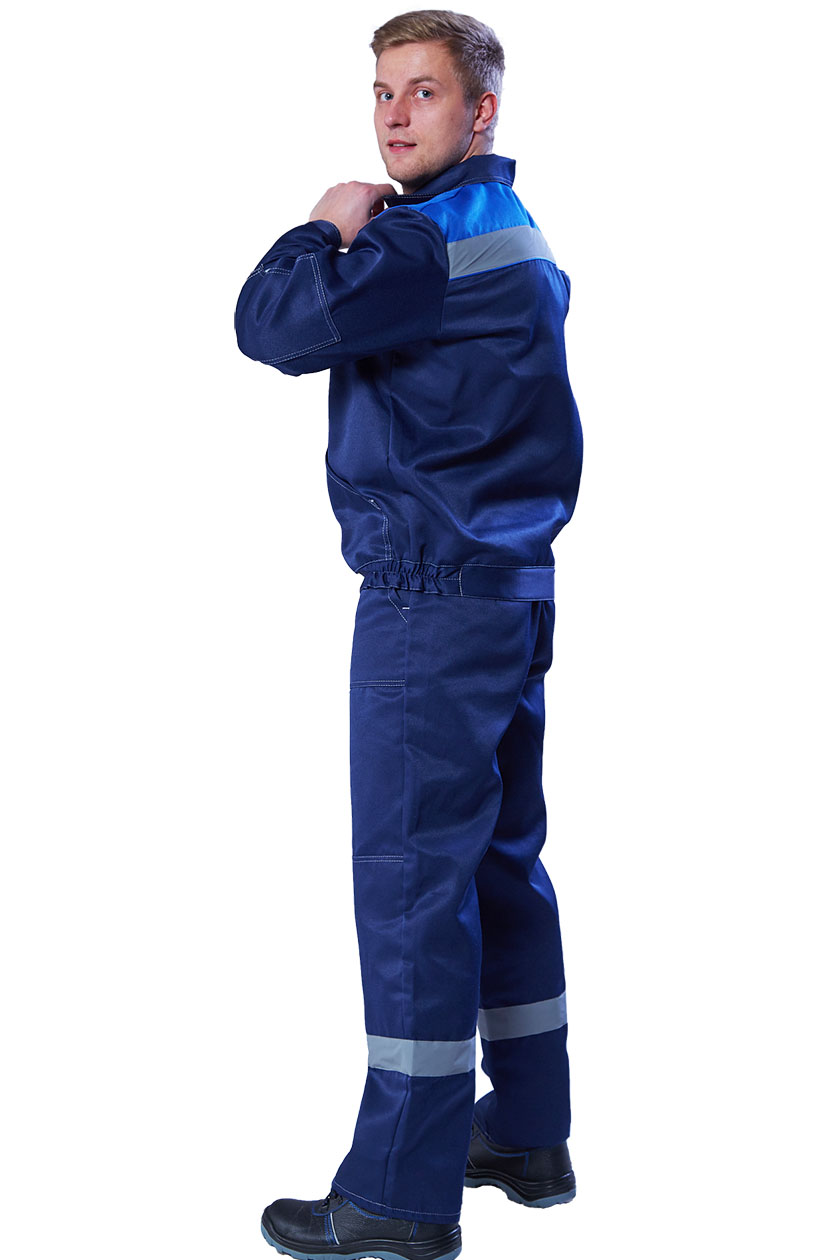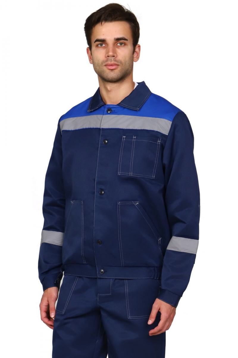 Рукава с манжетами, застегивающимися на пуговицу, с налокотниками. Притачной пояс с участками эластичной тесьмы по бокам. По шву притачивания кокетки и по рукавам СОП 50 мм.