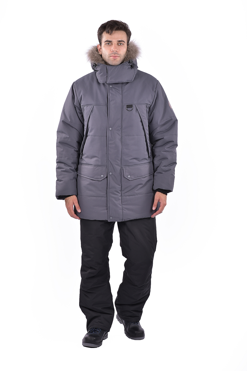 ➠ Куртка: силуэт прямой, удлинённый низ по спинке, притачная утеплённая подкладка, съемный капюшон со съемной опушкой из натурального меха, воротник стойка.