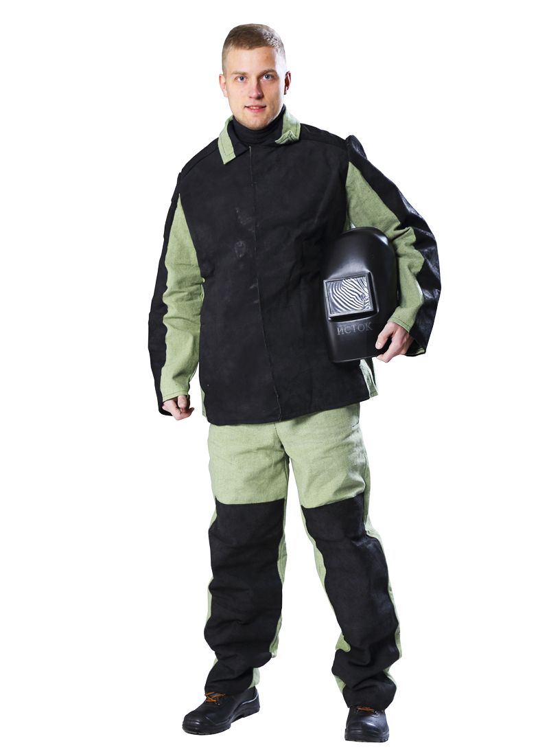 ➠ Брюки утепленные с притачным поясом, застежка гульфика на пуговицы. На передних половинках – накладные карманы. Передние половинки с усилительными накладками от линии бедра до низа из спилка. Нитки и фурнитура огнестойкие.